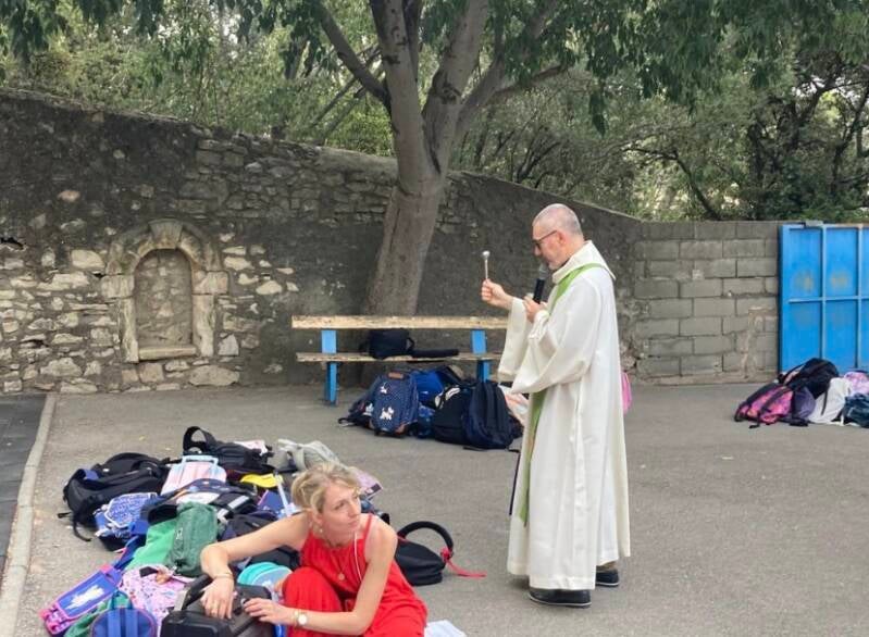 Mardi, tous les sacs de nos élèves ont été bénis.