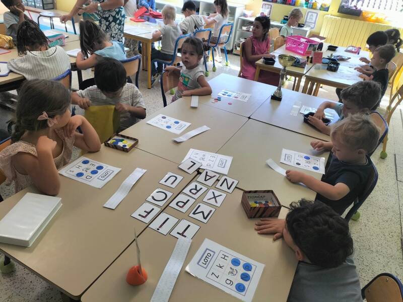 Les élèves de la classe de grande section jouent avec les syllabes: compter, situer, doubler ou supprimer une syllabe, comparer la longueur des mots . Grâce au loto, les cartes à pince et les autres jeux, les syllabes n'auront bientôt plus de secrets pour eux.